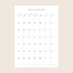 夏休みは、「計画力」を養う絶好の機会です。一日のスケジュールを立てたり、やるべきことを箇条書きにしたりする方法はさまざまですが、まず何よりも重要なのは全体像を把握することです。そのために、無料でダウンロードできるシンプルなデザインの「夏休みカレンダー2024」をご用意しました。